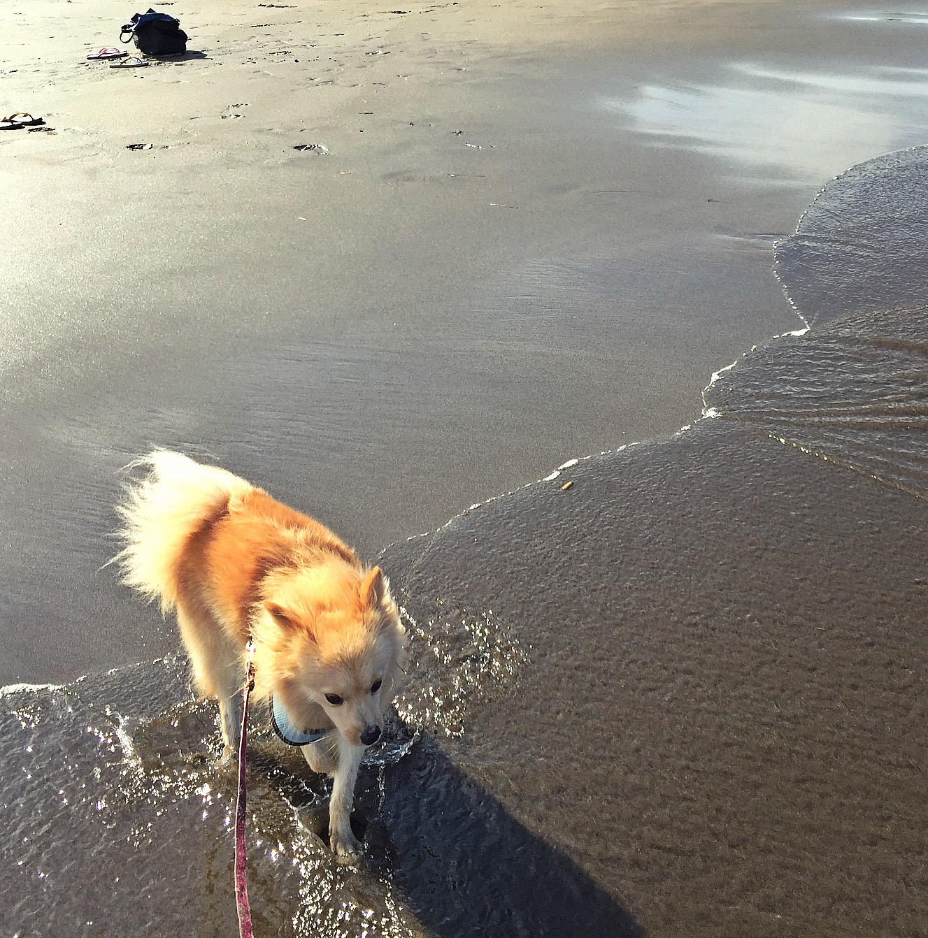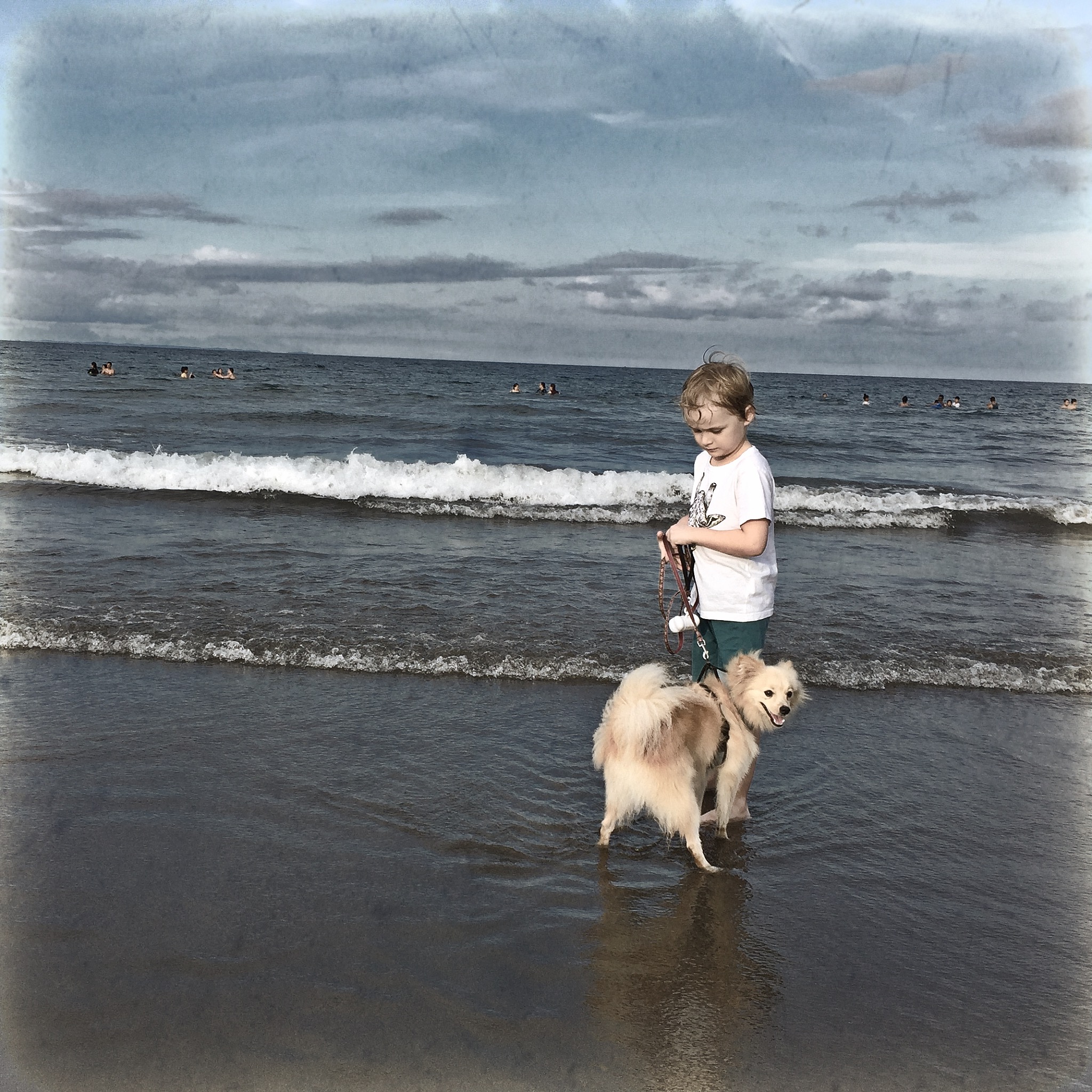 SB brought the kids out of the surf at last, exhausted and hungry. We got them dressed and let them rest on the beanbags. I brought more beer for us, and fish and chips for the children to eat before we headed back home. I took Noodles for one last walk around the beach, getting his feet wet before we loaded up the car at 5.30pm and drove home. I had packed the kid’s pillows, knowing they would want to have a sleep and within minutes of leaving Real Surf the children and the dog were all blissfully dreaming. Salty, sandy and happily exhausted from a delightful day at the beach.