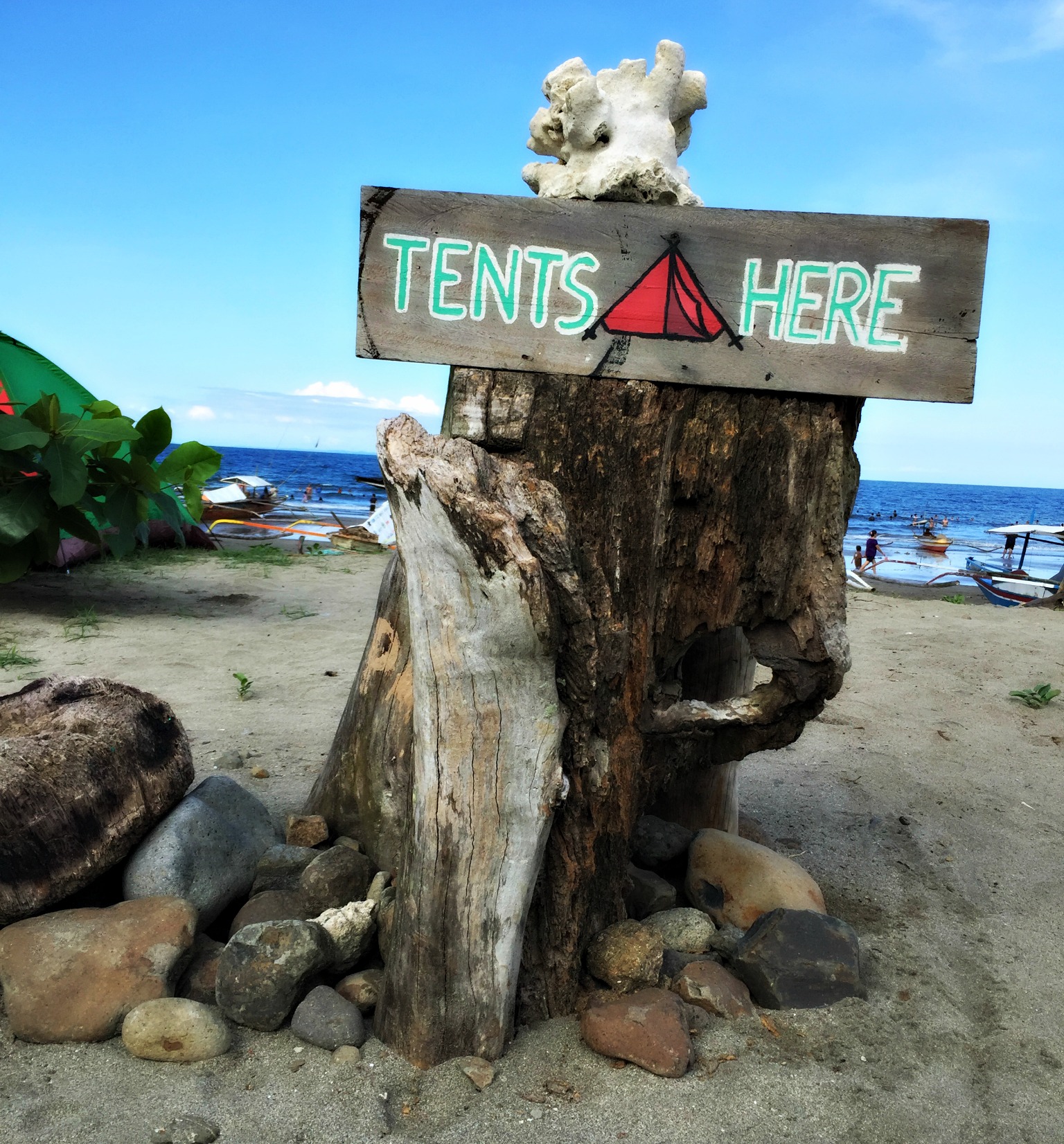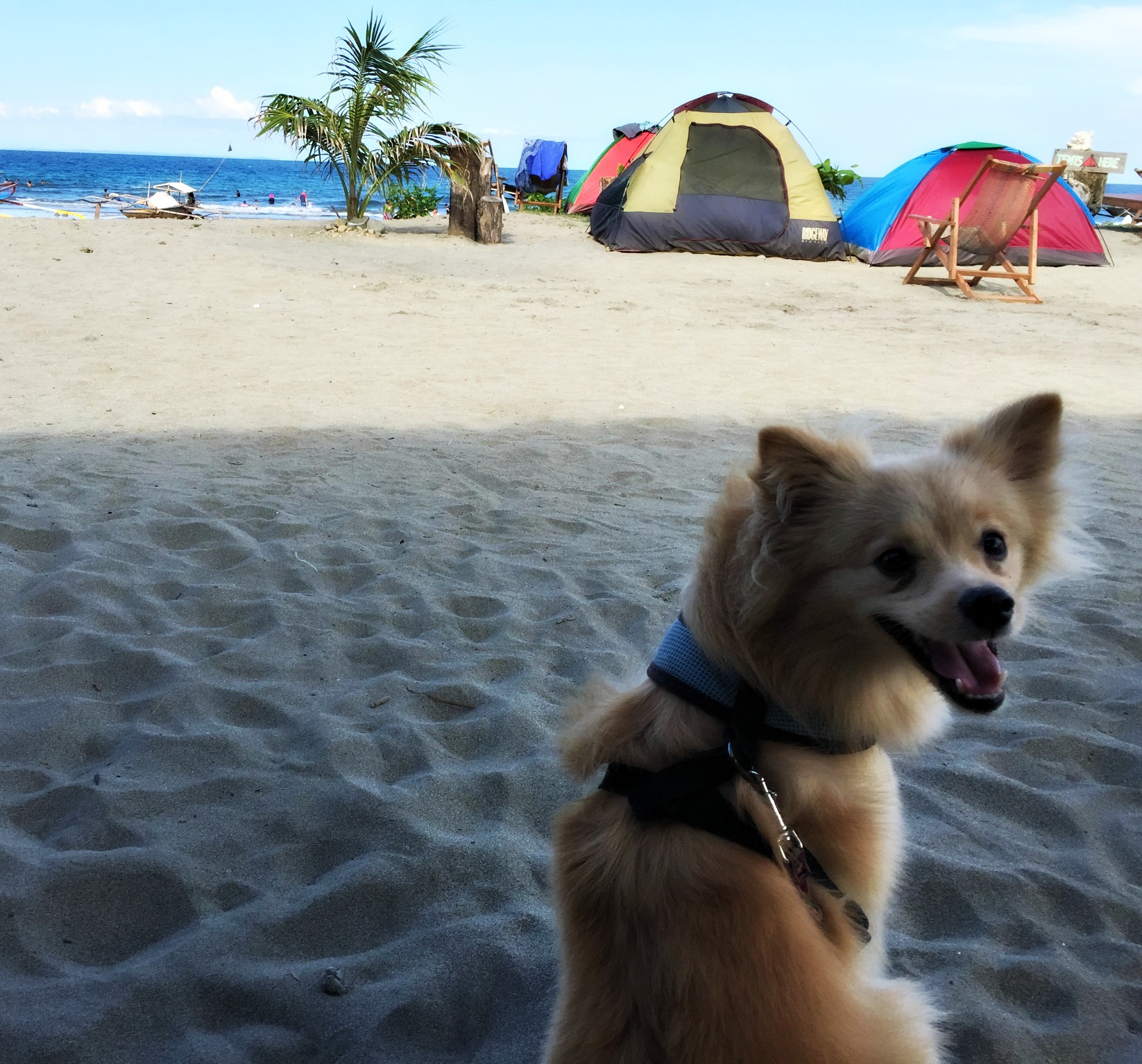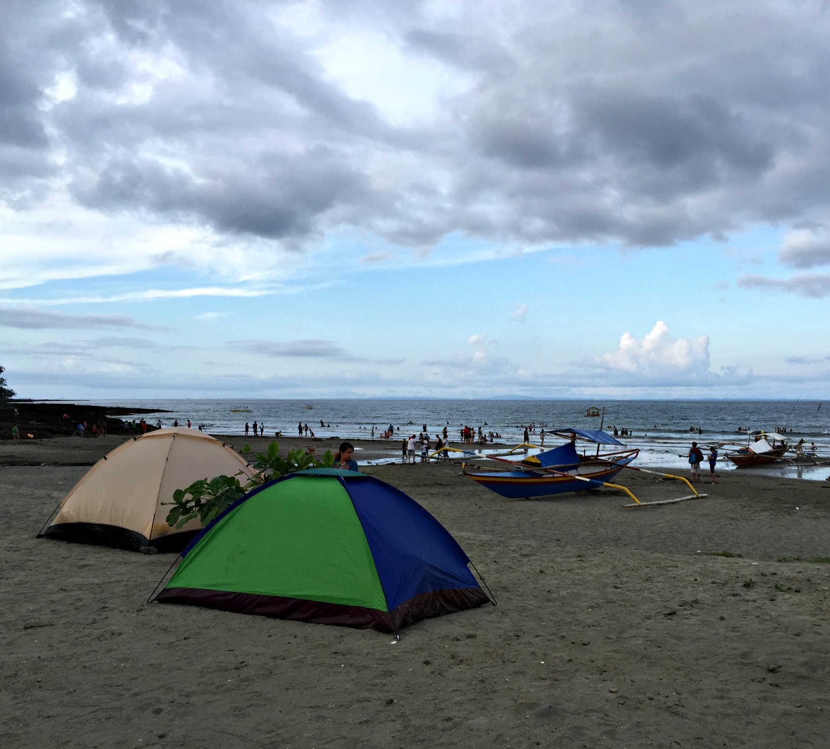 As I spoke to Ellen, Annie, a young Occupational Therapist from Manila started playing with Noodles. Annie was missing her pup, a black Shih Tzu named Snow. ‘People ask me why I named him Snow, I say why not?’ I like her instantly. Annie has travelled up by van and trike for the weekend with her friends. A small group of OT’s, Speech Therapists and one Engineer, they are here to celebrate Labour Day which falls on the next day. Their tents sit pitched close by and they lay on the beanbags sleeping in the heat of the day. Annie grew up in Bicol, a province down south. It is a place we have been planning a trip to. Annie tells me growing up near the beach was special to her and down that way there are some beautiful islands to visit and white sand beaches. That appeals to me. Snow lives with her mum down there and Annie visits as often as she can. Living in Manila, she works long hours and is not allowed pets where she lives. It took her group five hours to get here today as the van was old and kept breaking down. They explored the coast like we did and found the falls too. Annie tried surfing once and wanted her friends to have the experience, she was hoping they could borrow boards and have a go today but at Real they are only available for surf lessons which cost 500 peso per hour. I looked out onto the beach as we chatted and watched the surf instructor on the sand showing students how to stand and get balance on the board.Â