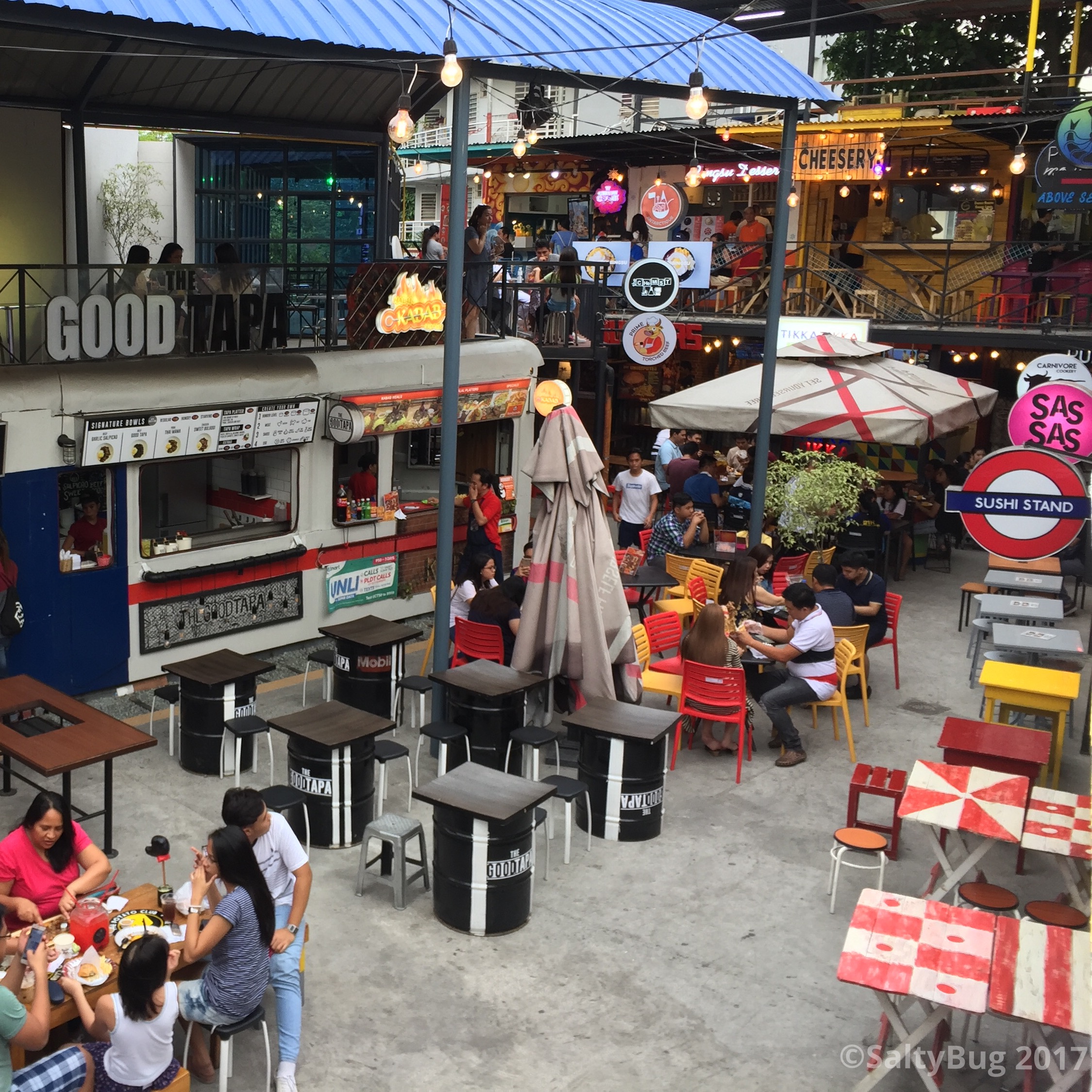 Food parks are becoming big business in Manila and around the world, it seems. This new funky concept of using shipping crates and upcycling materials to make shopfronts, tables and chairs has been around for a while. People are moving sideways from going to nice restaurants and sitting in a quiet booth to eat gourmet meals and sip a glass of Chardy – don’t get me wrong, I do love a bit of a fancy night out. But these days finding an outdoor area where friends can gather informally and just relax without fear of the children being too noisy or throwing spaghetti on the walls, just seems appealing. Food parks are something a little bit different to the norm, and they also offer variety. Depending on which one you go to, you will find a range of cuisines on offer.