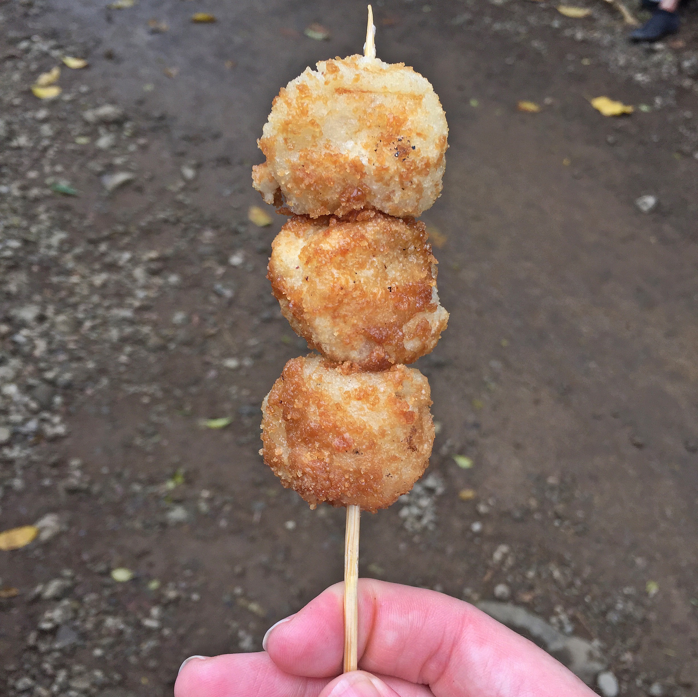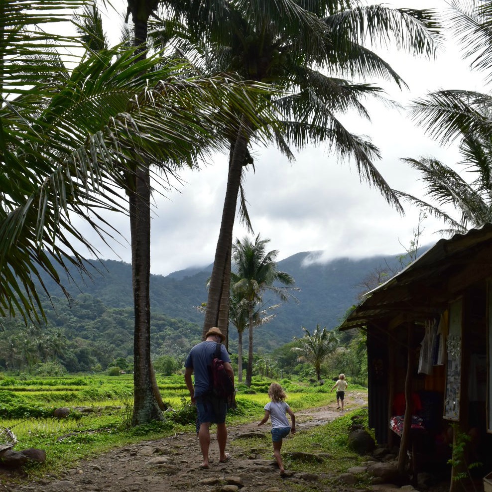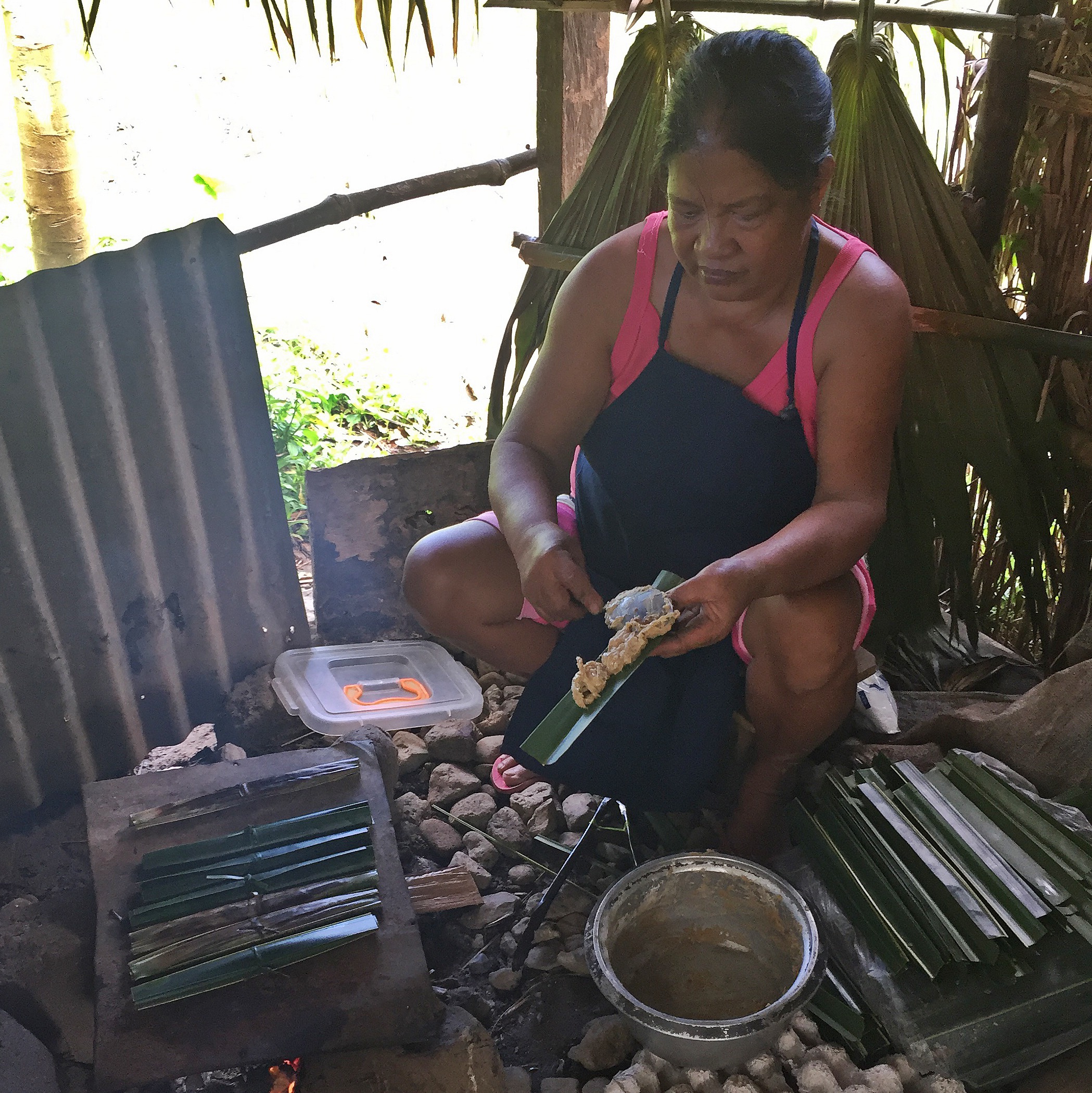 We walked down the muddy and rocky track, since it had rained it was slippery but still an easy walk at an easy pace. Along the way we found sari-sari’s selling snacks. Empanada’s with longanisa, egg and papaya, and sweet treats such as fresh buko, tupig (sticky rice, buko and sugar wrapped in banana leaf and chargrilled), and my favourite Karyoka (sticky rice, buko and sugar rolled into balls, deep fried, rolled in more sugar and either served like that or put over flame again to caramelise the sugar).