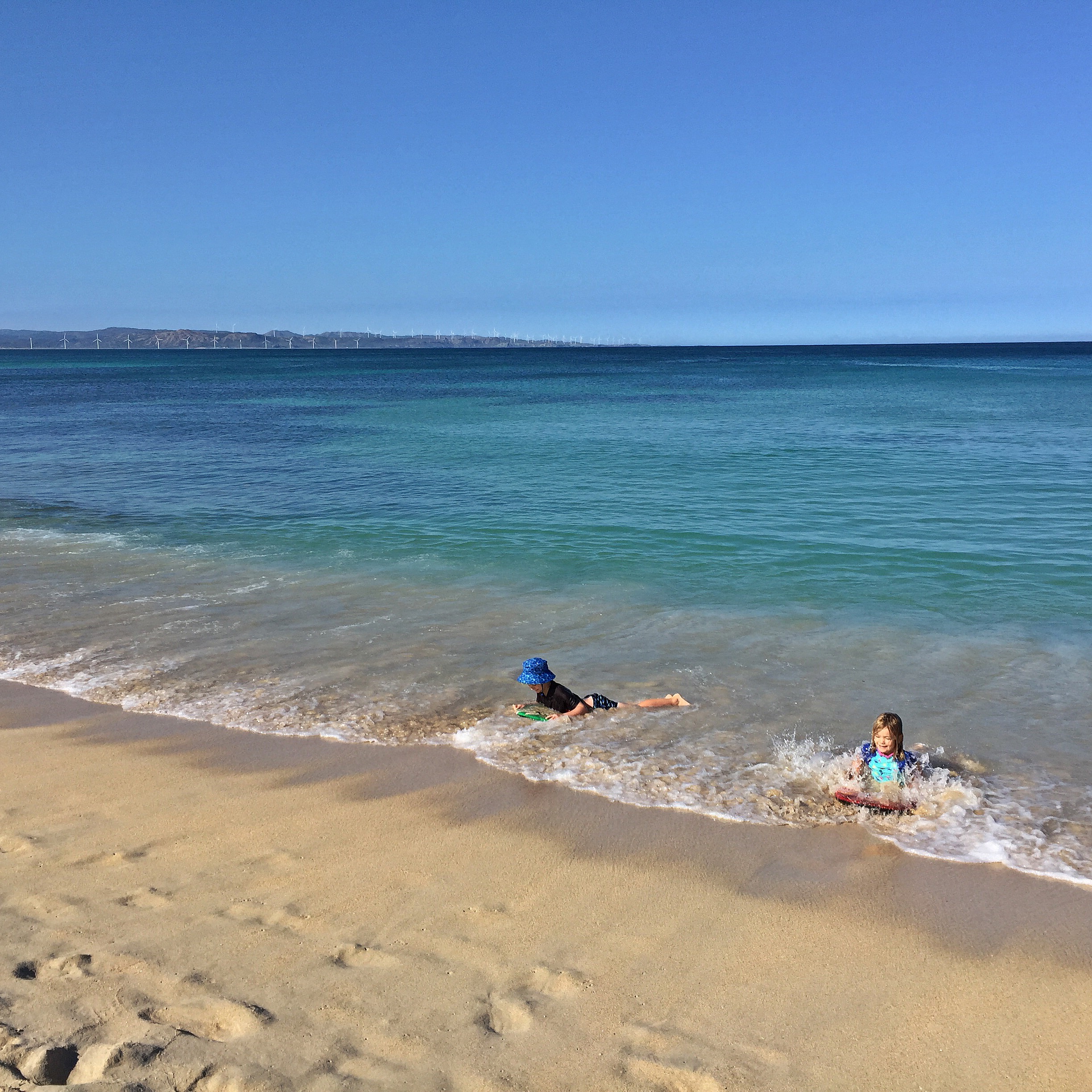 Day five, and the final day of our road trip. It was Sunday and we started our morning by laying in bed with the door open to watch the crazy surf wishing we did not have to leave. The children were playing Snakes and Ladders and arguing over goodness knows what as I tried to use my parenting superpowers to drown out their noise, choosing to focus on the meditative sound of crashing surf. That was a lot harder than expected. It had rained overnight so everything was damp, but the weather had cleared and the skies were blue, promising a hot dry day.