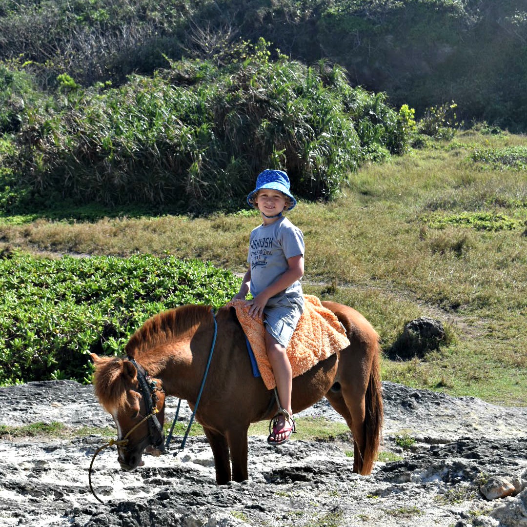 It is really hot here, at the Kapurpurawan rocks, boiling hot so on the walk back we got the children a horse ride each which gave them reprieve from walking through the heat.