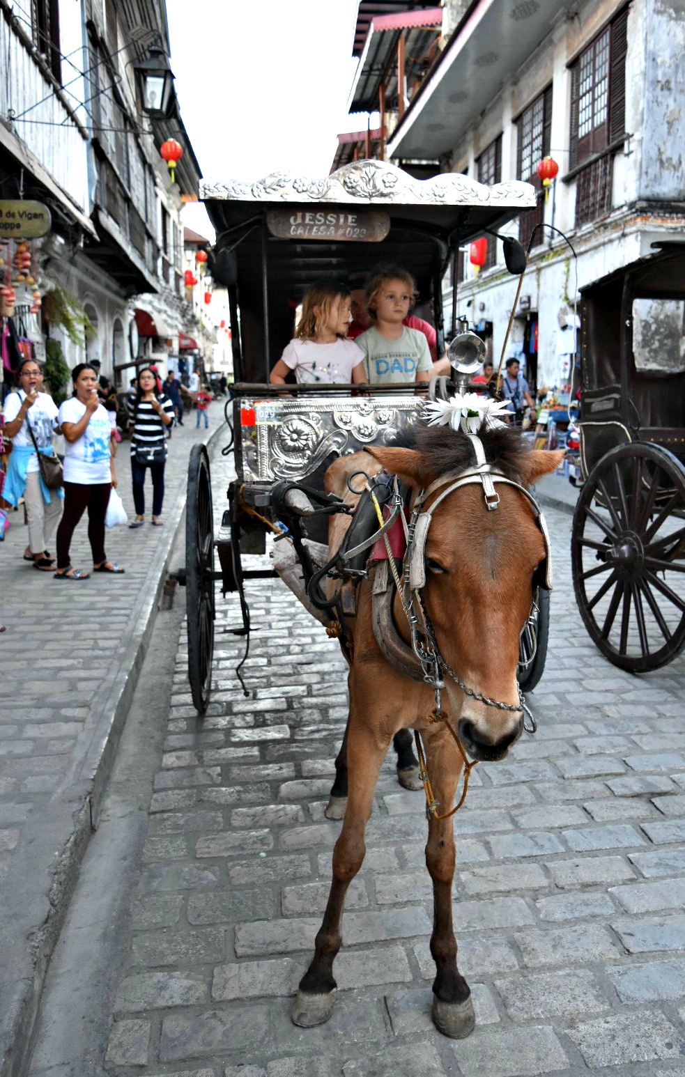 It is still a local town, which means when you arrive you drive along normal busy, cramped and messy streets. The ‘special’ bit is one street called ‘Heritage Village, Calle Crisologo’. This street is maybe five hundred meters long, cobblestoned with lovely old Spanish style buildings. Sounds great. Thing is, it is totally abused for tourism, therefore these gorgeous buildings now house souvenir shops that spill out onto the streets during business hours. A few restaurants are there and at dusk set up tables in the streets so you can sit and enjoy the view. The crowds of people become so thick by late afternoon you can barely see the cobblestones you walk on. Horses with kalesa’s trot up and down carrying visitors busy getting selfies.