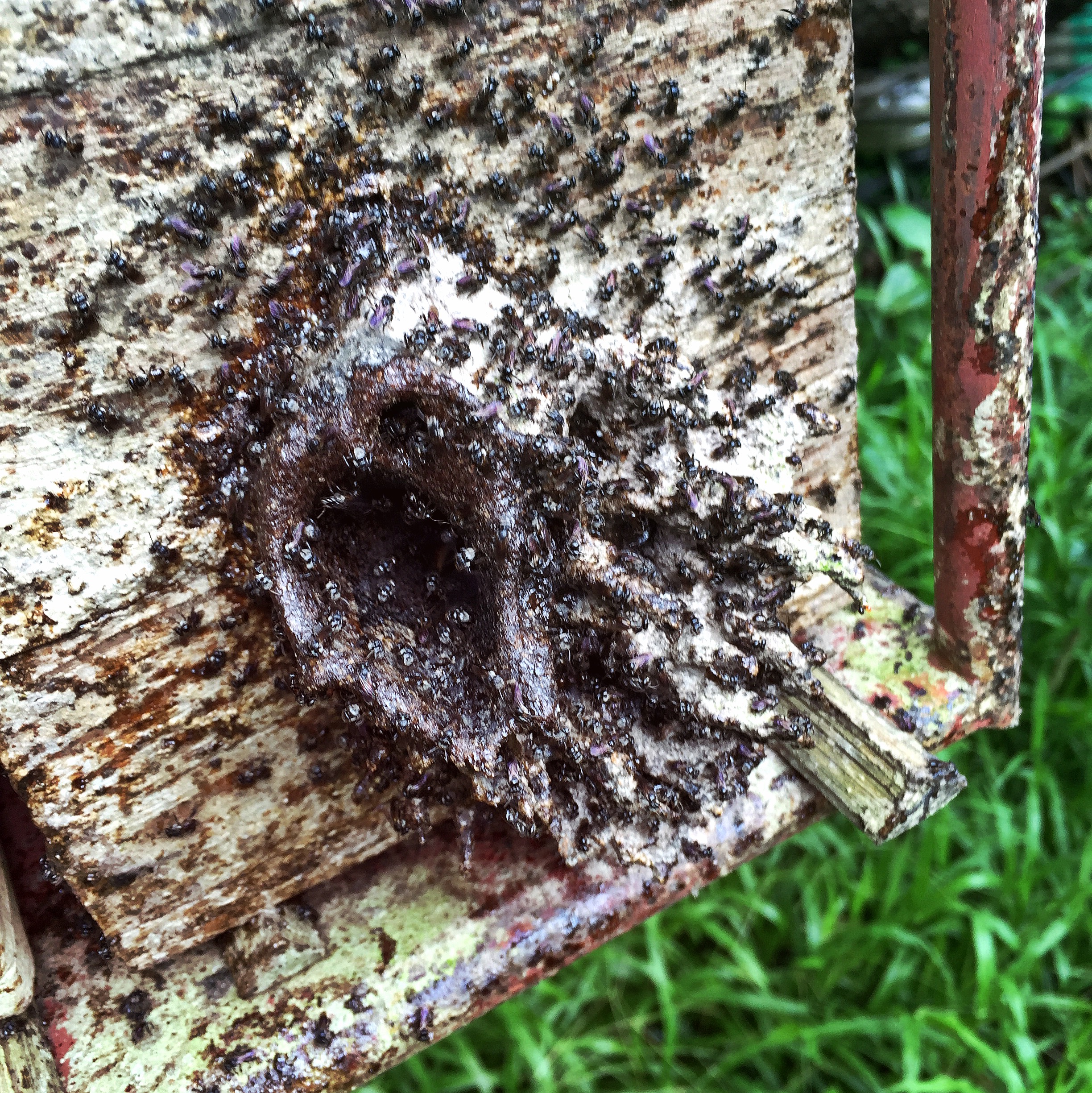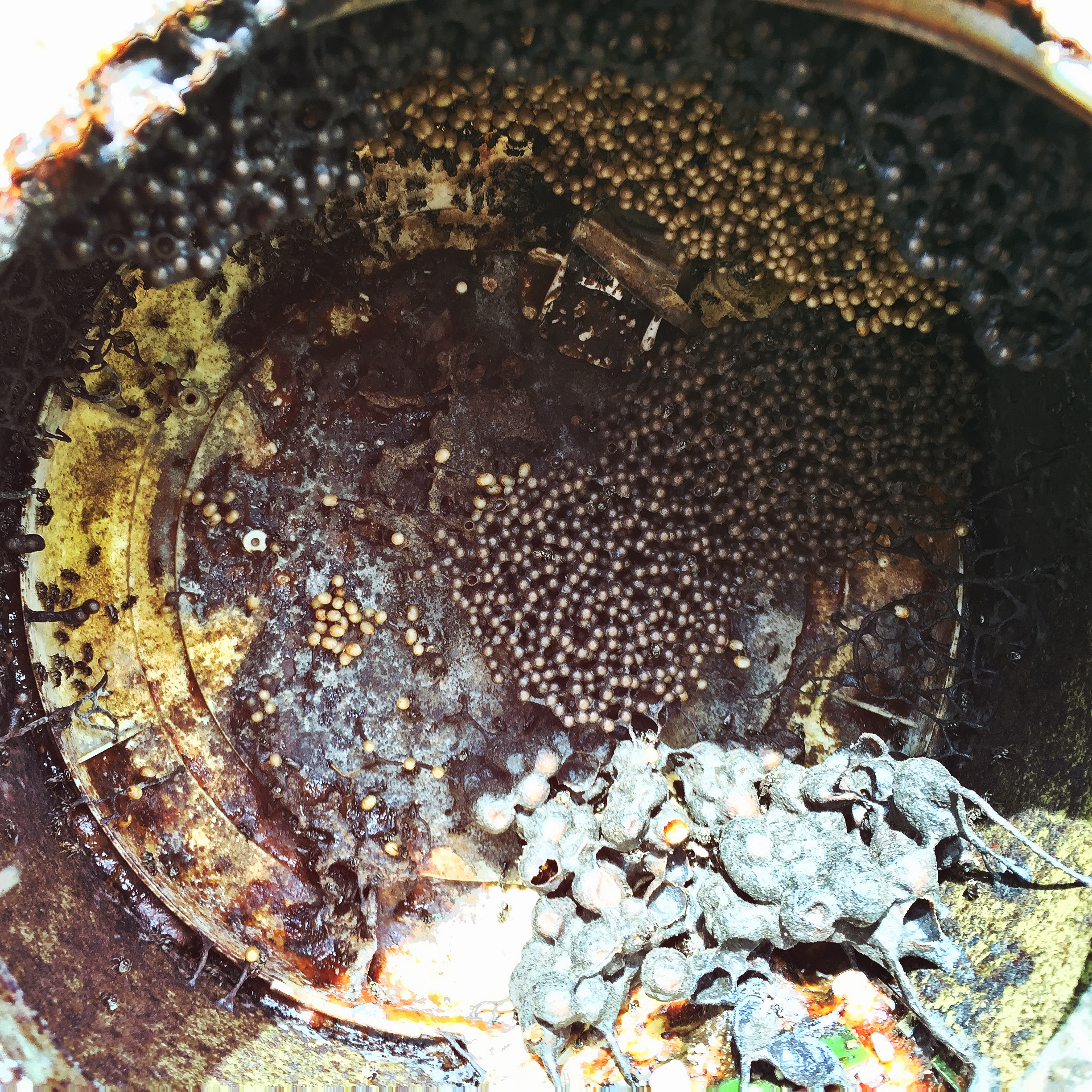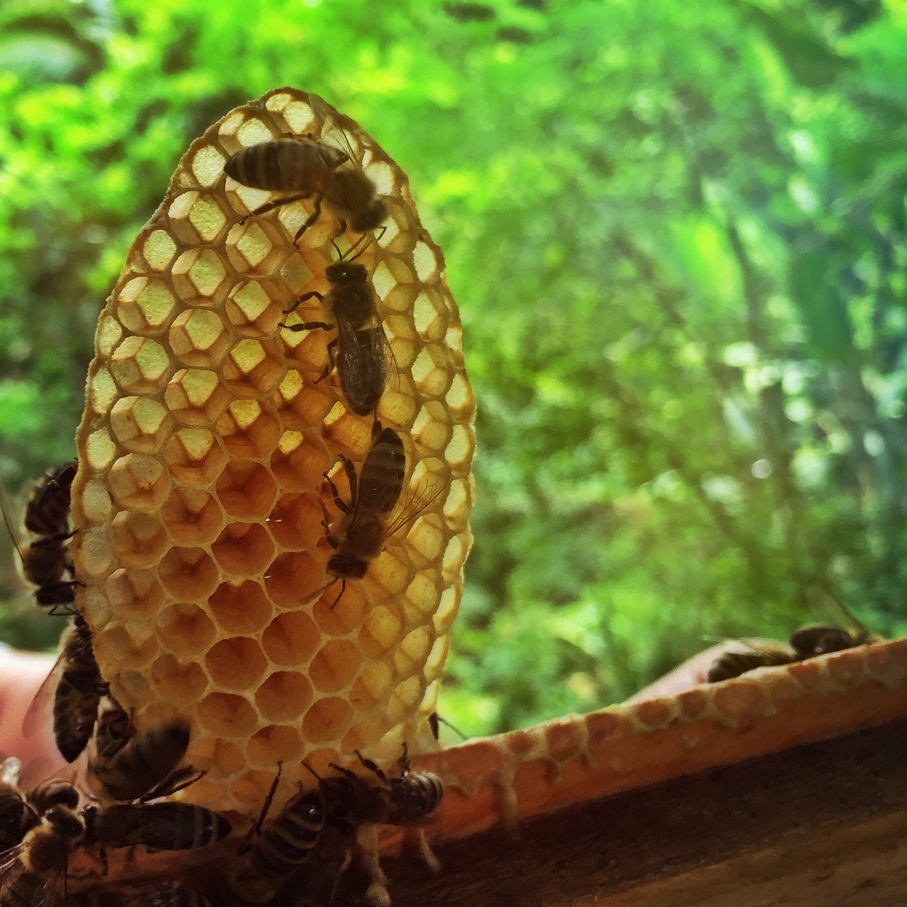 Bees do something called ‘fanning’ to communicate to other bees. We watched in fascination as a very proud worker bee return to the hive with legs filled with pollen. She did a dance and fanned to let other bees know how much she had and a few came up to her to check it out. It was really kind of cute. Rico understands these creatures; he knows their behaviours so well he was able to point them out to us, so that we could learn.