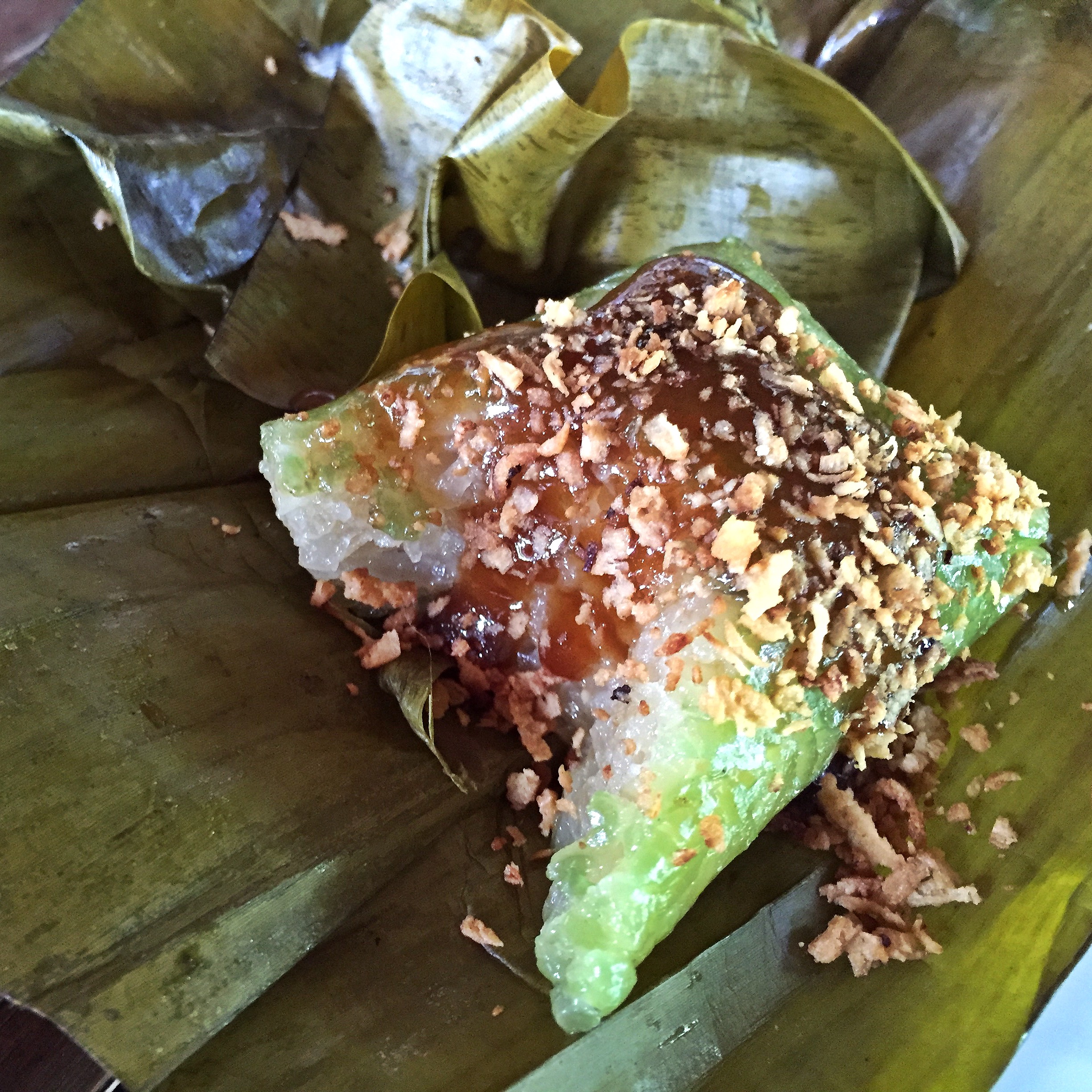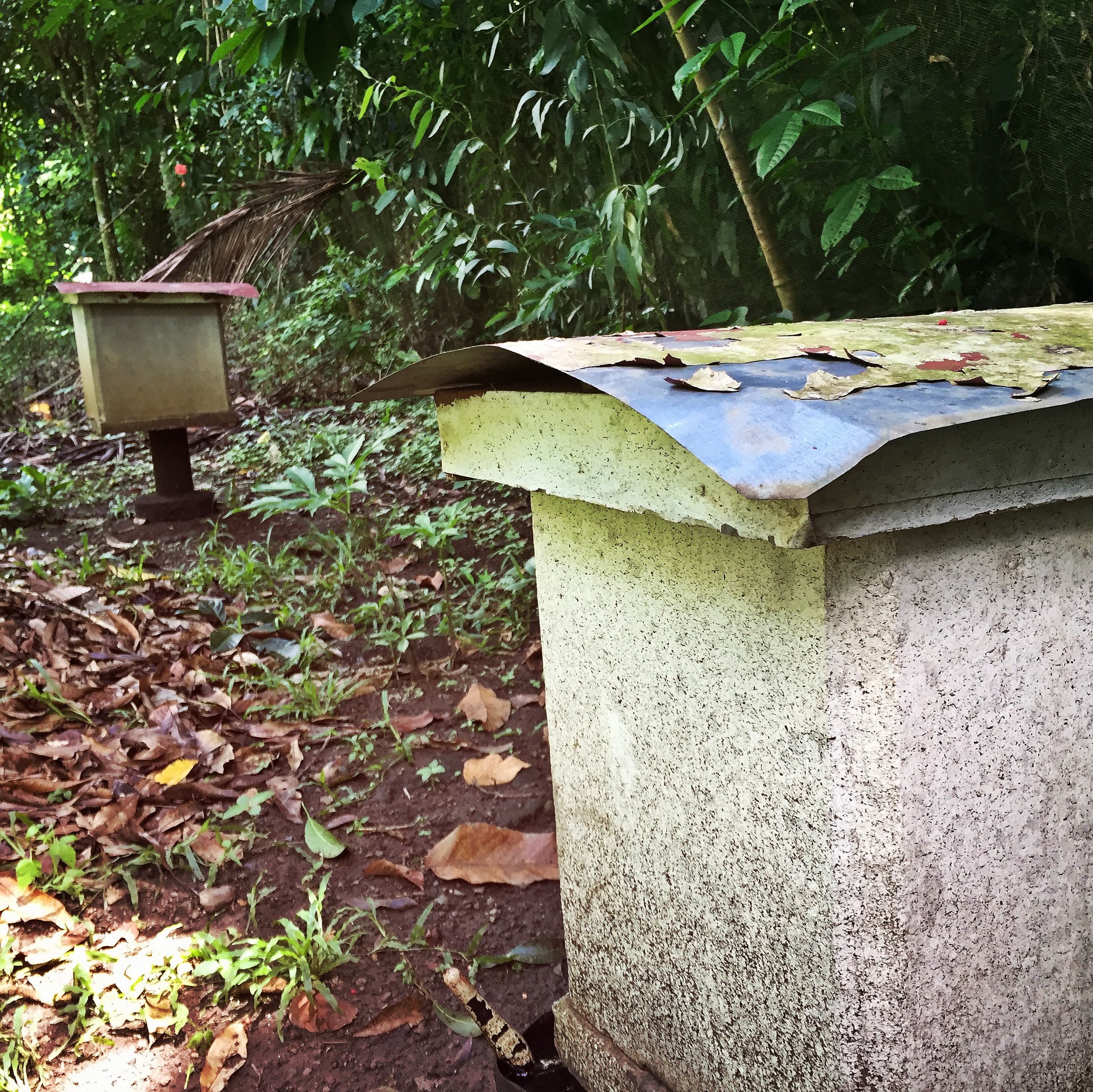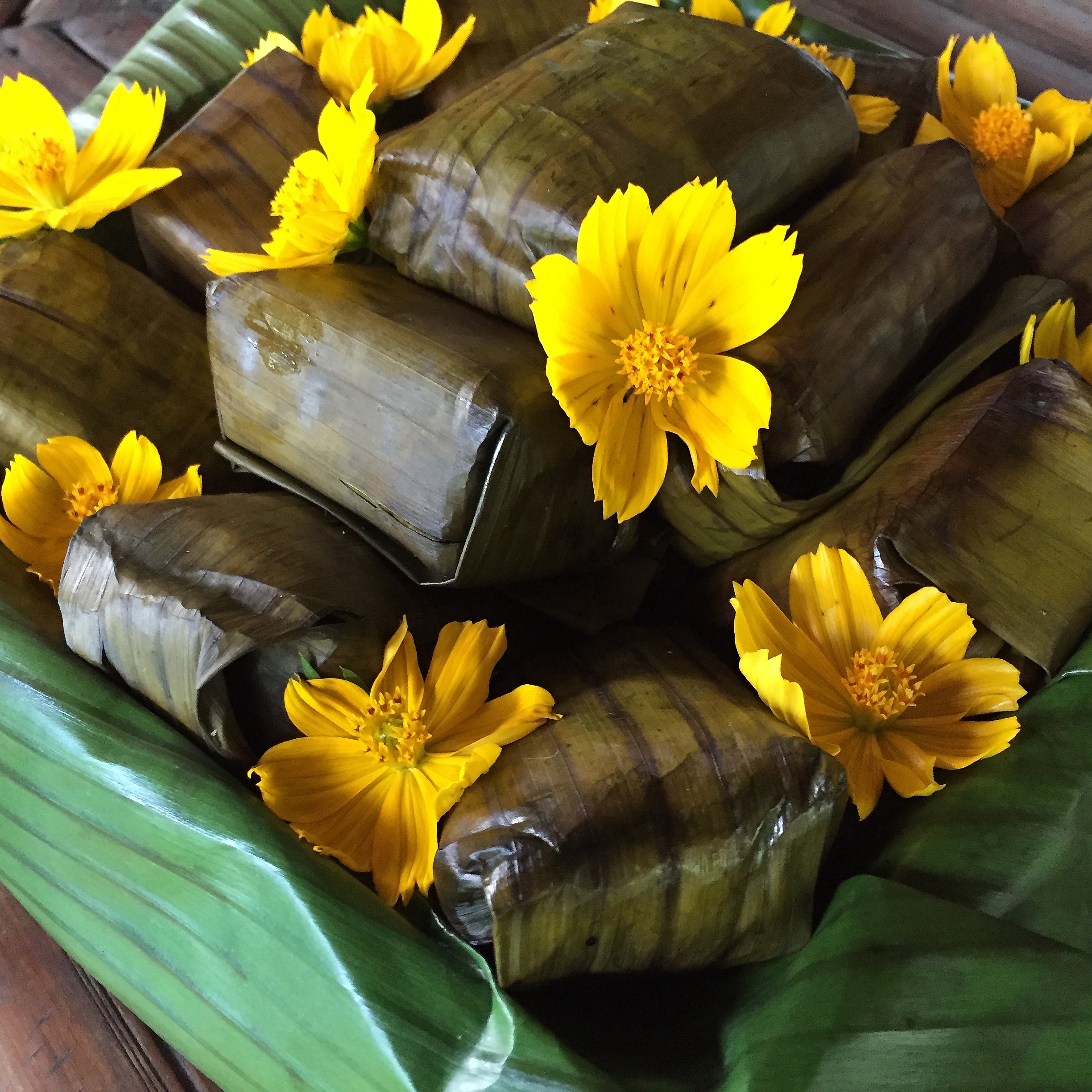 Through another gate and along another winding path passing by a bee hive heaving with activity as we went, we arrived at a small building enclosed with netting. I guessed it was to let the non-existent breeze travel through. It was hot and we welcomed the shelter from the burning sun as we were offered a welcome drink of icy cucumber water or comote water. Here is an interesting piece of information. Comote is actually sweet potato. The root is boiled down and mixed with honey and citrus to make a refreshing drink. Perfect for such a hot day. We looked around and chatted as we waited for a few more visitors to arrive for the tour. We snacked on suman, served with coconut nectar mixed with honey, and roasted coconut flesh.