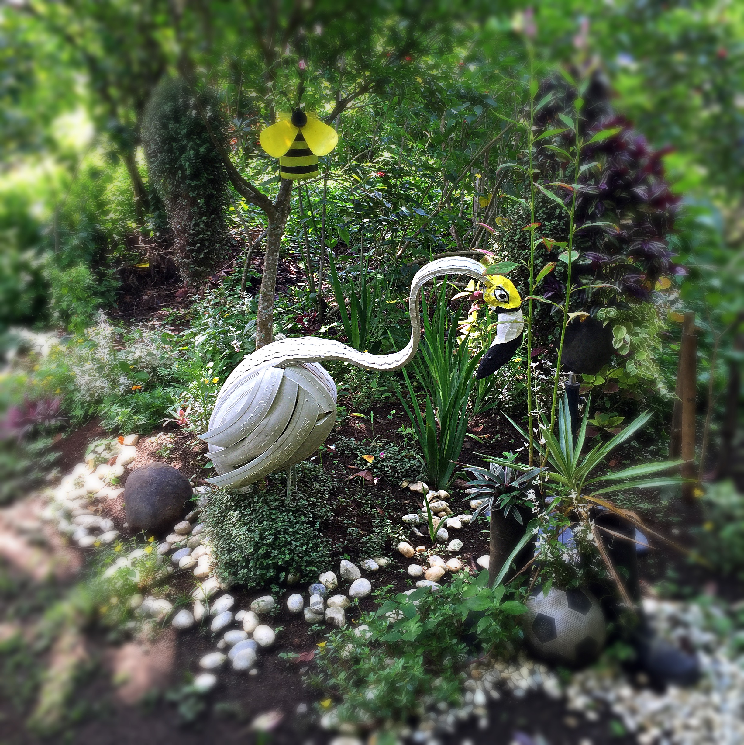 The farm focuses on propagation and practices two kinds, Apiculture/Apiary (propagation of Apis Bees which are bees that sting) and Meliponiculture/Melipony (propagation of Stingless Bees). The key purpose of the farm is to provide a healthy and stable natural environment for the bees to breed and produce queens which can then be rehoused in rural areas to build colonies. The by-products produced are used to make honey and a range of cosmetics from balms for abrasions to soaps and shampoo. Rico is all about sustainable practices and he uses permiculture to create this lush and healthy environment for the bees. So healthy, a range of other wildlife can be found here too with butterflies and other insects in abundance as well as attracting birds. It was fascinating to learn how to make fertilizer using bamboo, rice and molasses.