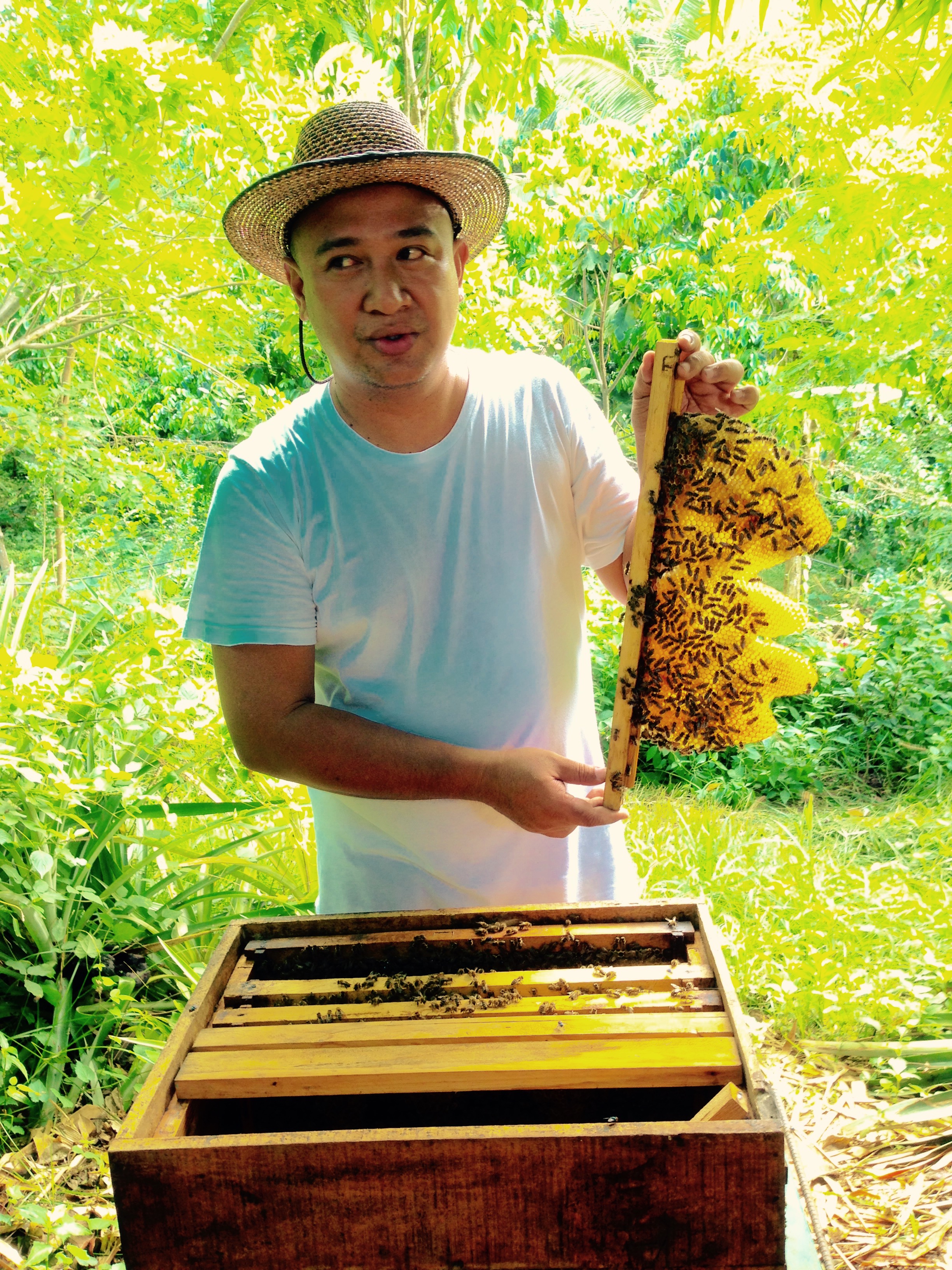 Did you know that there are about 25,000 species of bee and only seven of them produce honey! All seven of those species live here in The Philippines and, on Rico’s property.
