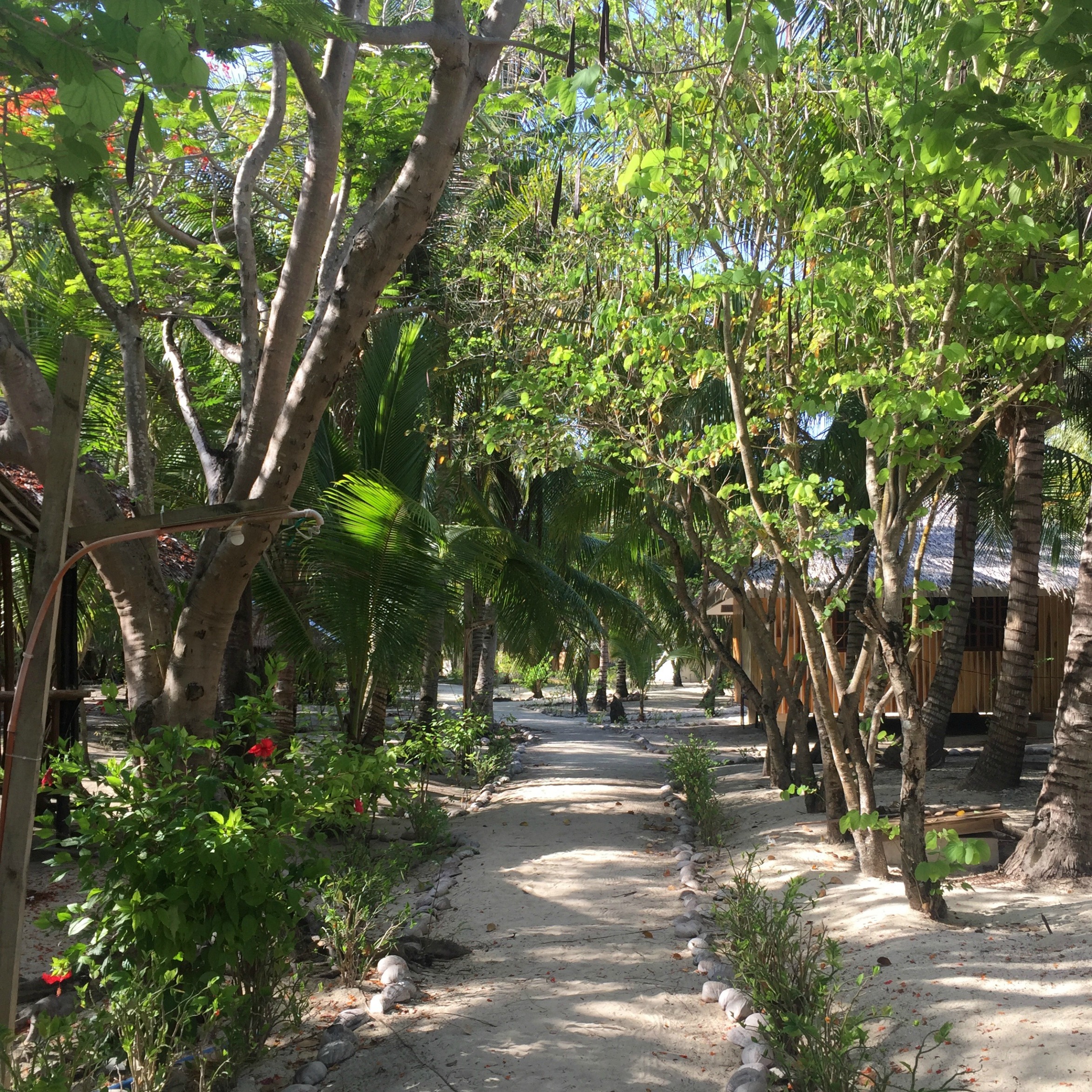 Our room is basic but comfortable. Electricity is by generator and only on between 6pm and 8am. But really, why would you need it during the day? There is no reason to be in your hut when you have perfection as you step outside the door. There is WIFI and mobile coverage, bringing the outside in, for those who cannot live without connection. There is no air conditioning, but a ceiling fan gives us comfort and a pedestal fan offers support. The power ebbs and flows like an ocean current and the fan beats fast then slow and then not at all for brief and sporadic power outs. We slept with our door and windows open to let any small breeze flow through. There is only cold water here, but in this heat it really doesn’t matter. The showers are salt water, which is one of the disappointments for this resort. However there is a free water, tea and coffee station at your disposal, and so you can refill water bottles to pour over your salt covered skin for a cleansing wash. It really is manageable. I took wet wipes to help clean our skin from the salt assault.