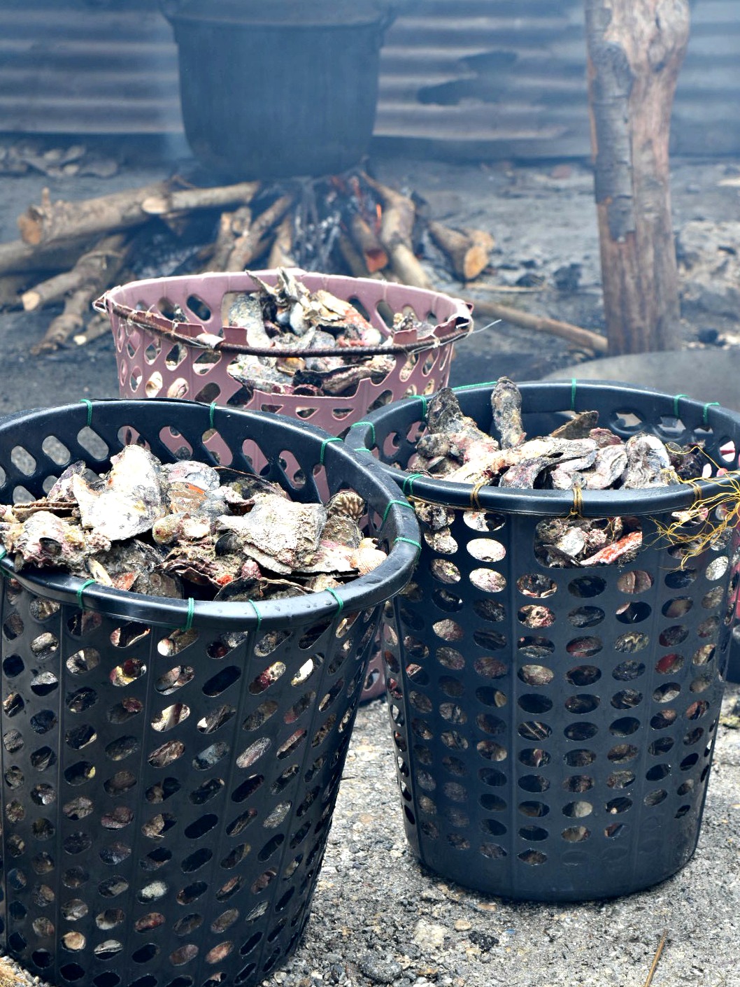 I finally felt recovered enough to take a walk, and watched the seafood being cooked in great vats of water over open fire. The smoke and heat burned my eyes, and I had to keep turning away as the cook tipped the boiling water out into baskets, water spilling everywhere and steam rising with a force that almost knocked you to the ground. It was great! I met a young chap whose family owned this business. He lived on another island and came over with his mum to help out when it was busy. He said he really liked the rock oysters best, and he had wonderful manners which impressed me very much.