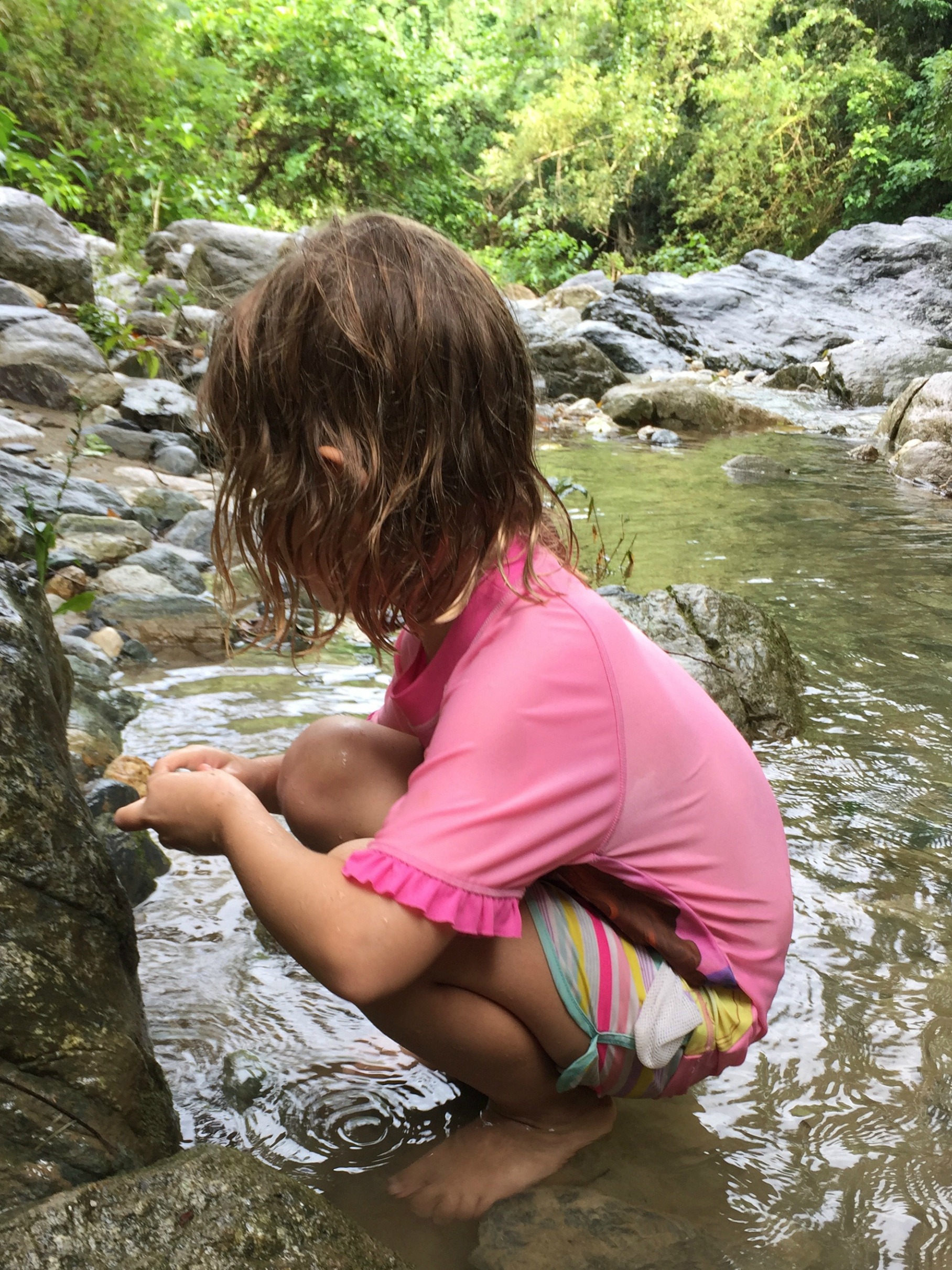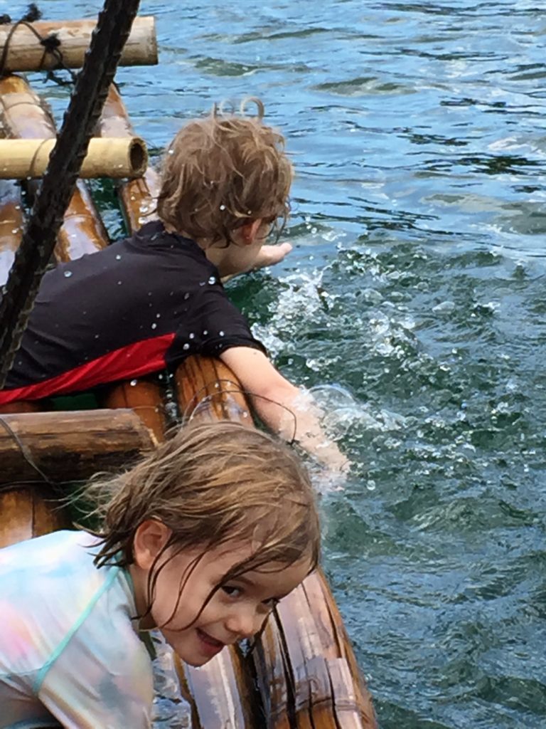 We do let our kids have iPad time, however it is very limited, and use in the car is only for emergencies (also for airports, delays at ferry terminals, and to distract them from hunger), because for FB, staring at a device in a moving vehicle is a prime trigger for puking. Also, we find when they have their heads buried they totally tune out of what is going on around them and they cannot be engaged. We talk to the kids as we go and encourage them to play games together. We like looking out of the windows at exciting things and playing games like ‘spot the monkey’ and ‘spot the caribou’. I get great satisfaction when weeks later the kids start talking about the corn we saw drying roadside and the little birds eating it. So, yes I have my iPad for downtime, but we encourage looking out and discovering the real world. Having teachable moments.
