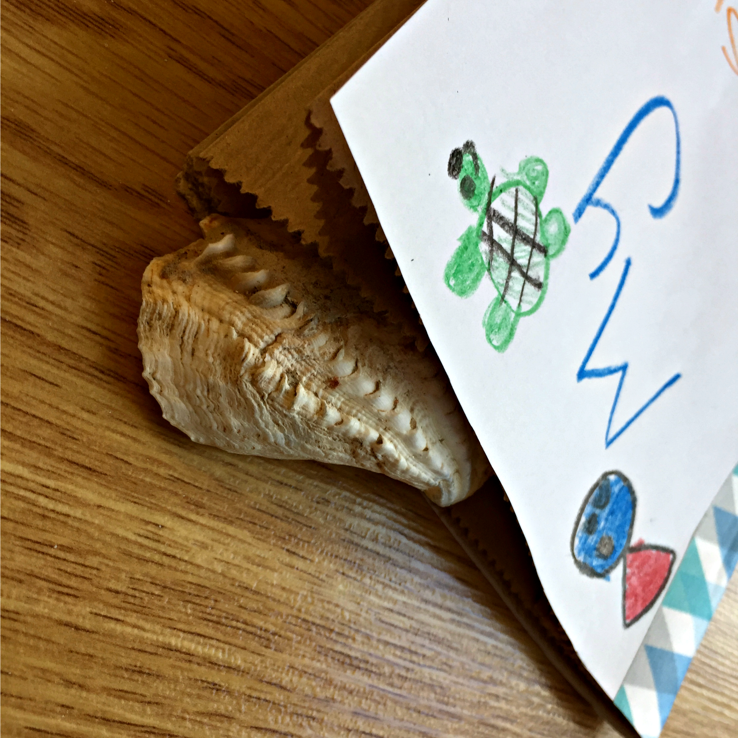 This is something I do occasionally, depending on where we go, and I totally stole this idea from somewhere – most likely Pinterest, sorry I can’t remember. I buy paper sandwich bags, put a small pile together and cover with a folded A4 piece of paper for its cover, then staple the sides together to make a book. The idea is that while on holiday, the kids collect treasure from nature, draw and/or write about it on a bag and put the item in the bag for safe keeping. Then they can take it to school for show and tell and talk about their adventure.