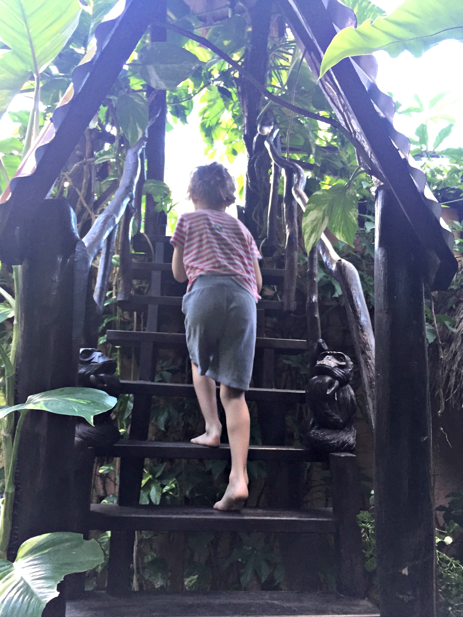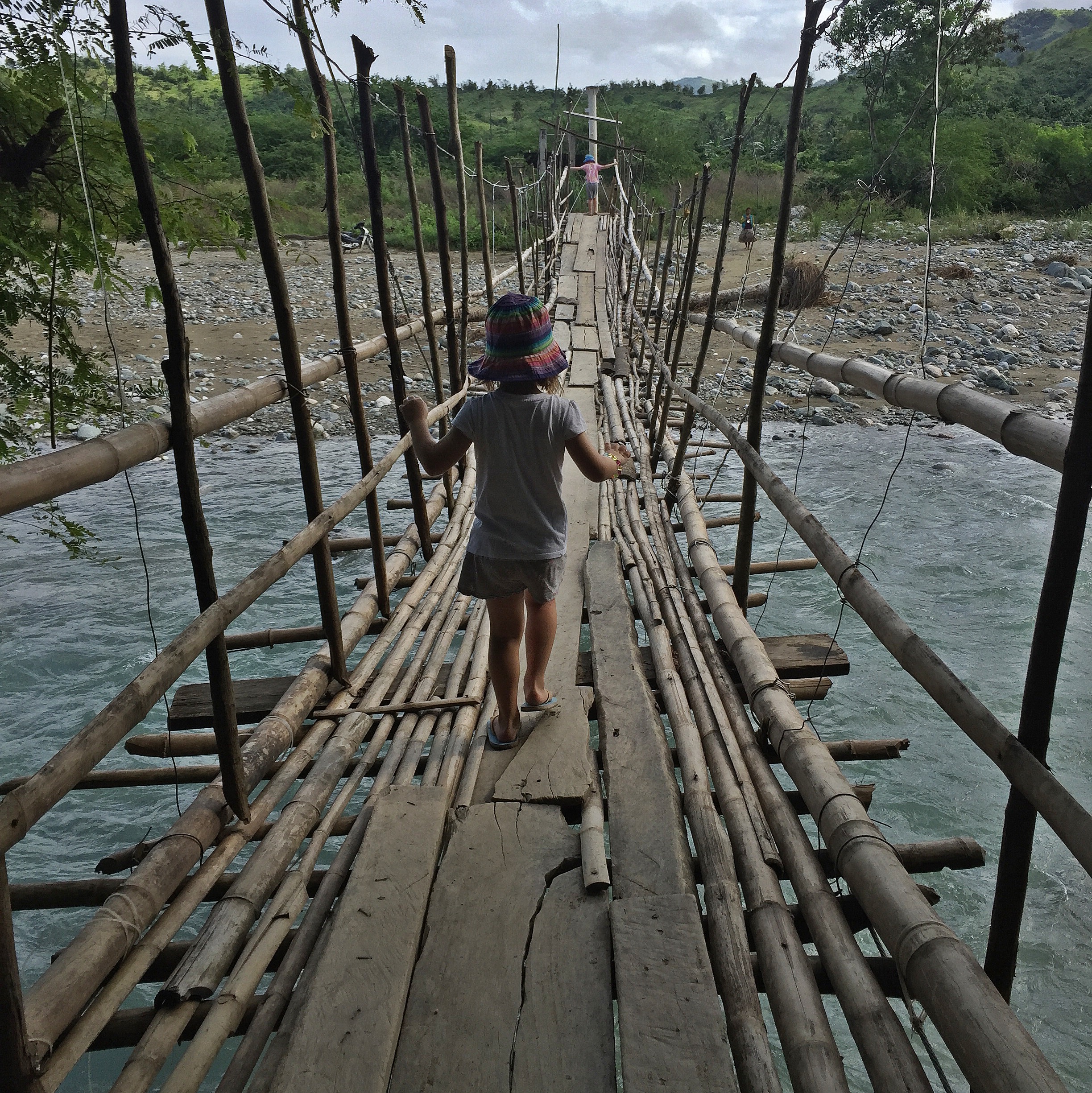 Local villages lay interspersed along this area, and passing through on your adventures local children smile and say hello. There is curiosity on both sides as we look around to take in a way of life so different to ours, and they wonder what strange land we came from. Two rivers flow down from the mountains and meet the ocean and on our first day we walked along the Udalo River, marveling at the ferocious, cool waters. We sat at river’s edge and let the children explore the shallows looking for rocks, glistening in the water. BB thought he had found gold as the sparkles reflected in his eyes. A crude rickety bridge of bamboo and wood was used by the locals who did not blink an eyelid as they skirted across. The cables wobbled and gaps between planks gave a peep show of flowing rapids underneath. The children thought this was awesome and walked across with courage. Then SB walked across and as I gestured for them to come back, they said ‘no’. I am not a fan of wobbly bridges and as I made my way across I muttered various words under breath. I made it to the end with my heart beating out of my chest.