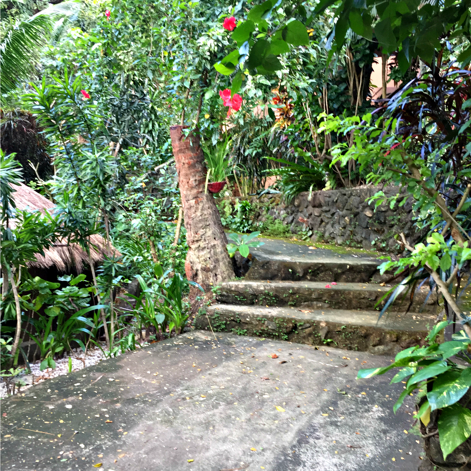 Walking through the gates of the Tuko Beach Resort it feels very much as if you are being transported away in to another world. Nestled on the mountainside surrounded by jungle, small cottages sit nestled in a dense garden, and winding pathways play ‘pick your own adventure’ with the children. The website says the cottages are designed for ‘living close and in harmony with nature’ and you certainly are. Windows are thrust open for natural air conditioning as the sea breeze blows through, cleaning away the dust of city life from your skin. The sounds of the waves crashing on rocks was loud and soothing and instantly took me back to my hometown on the coast of Australia. Funny isn’t it, how sounds of nature are so similar across continents. The occasional distant motor of a banka driving past adds a new beat to the natural melody played here.